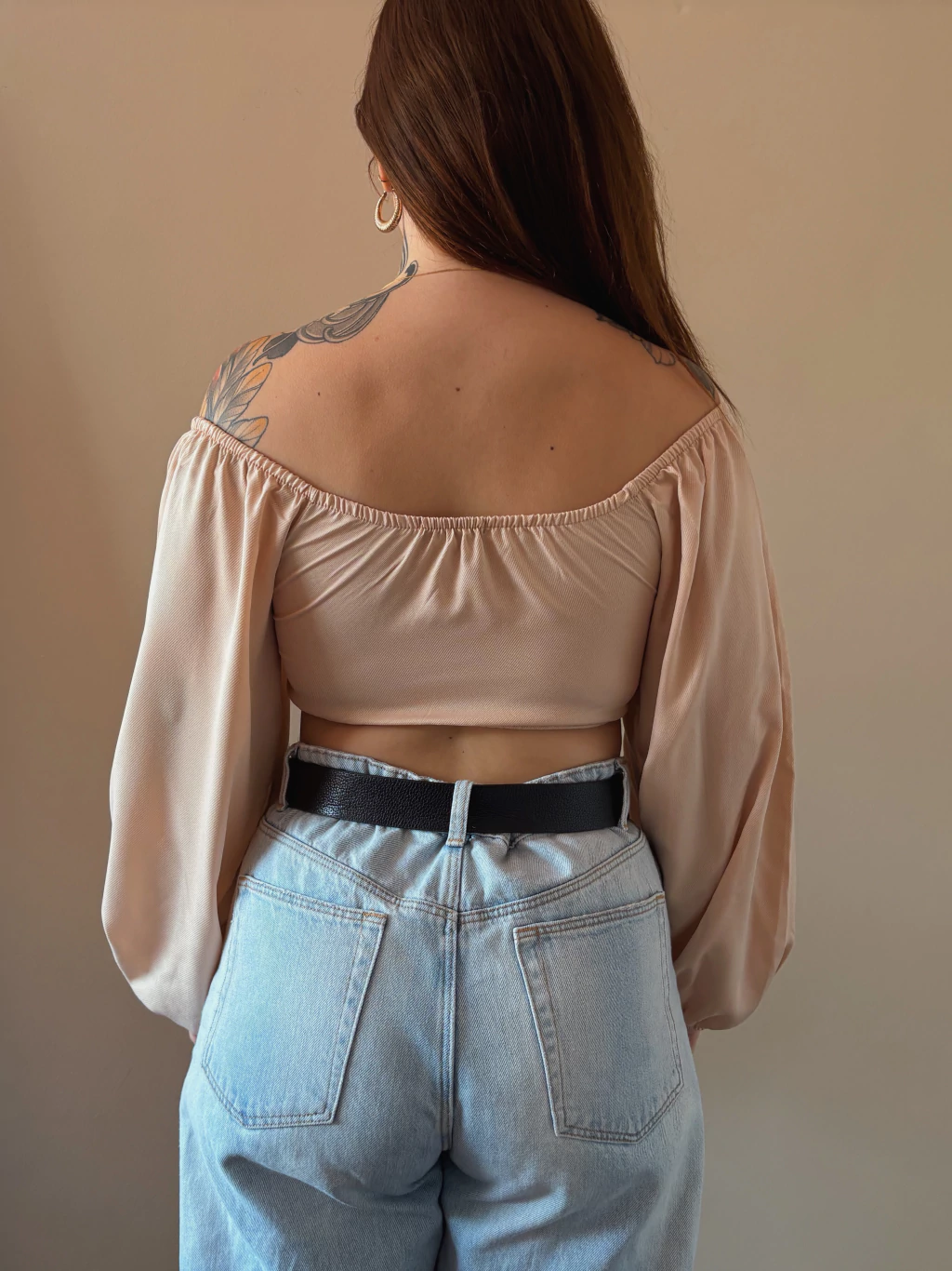 As mangas bufantes acrescentam volume com sofisticação, criando um contraste leve e feminino. A combinação entre estrutura e fluidez transforma a peça em um destaque casual-chic para qualquer ocasião.